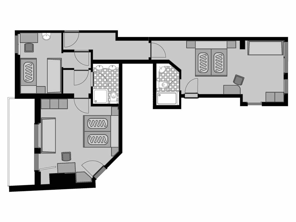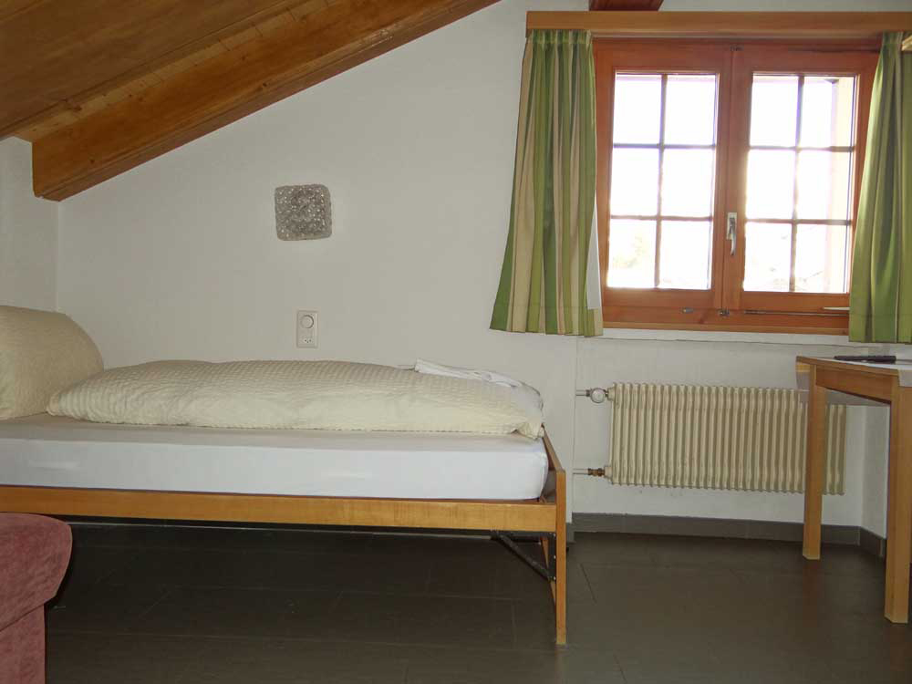 Practical family room, bathroom with shower/WC and hairdryer. Flat screen TV with radio. Balcony to the north side. A connecting door leads to the adjoining room in the sloping roof with washbasin, which can accommodate 1 to 2 people.
