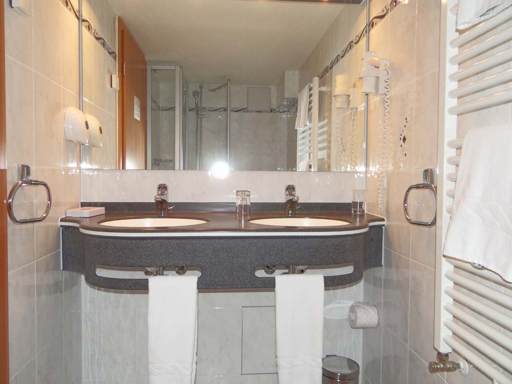 Beautiful room facing south (one extra bed possible), bathroom with shower/WC and hairdryer. Flat screen TV with radio.